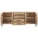 | Uitvoering | Uitgevoerd in gezandstraald mangohout in de kleur warm naturel en een zwart metalen frame, met 4 deuren en 4 laden. |