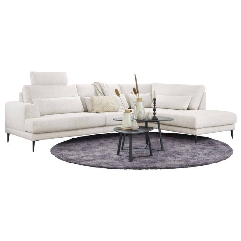 Beige hoekbank Ansio in bouclé stof