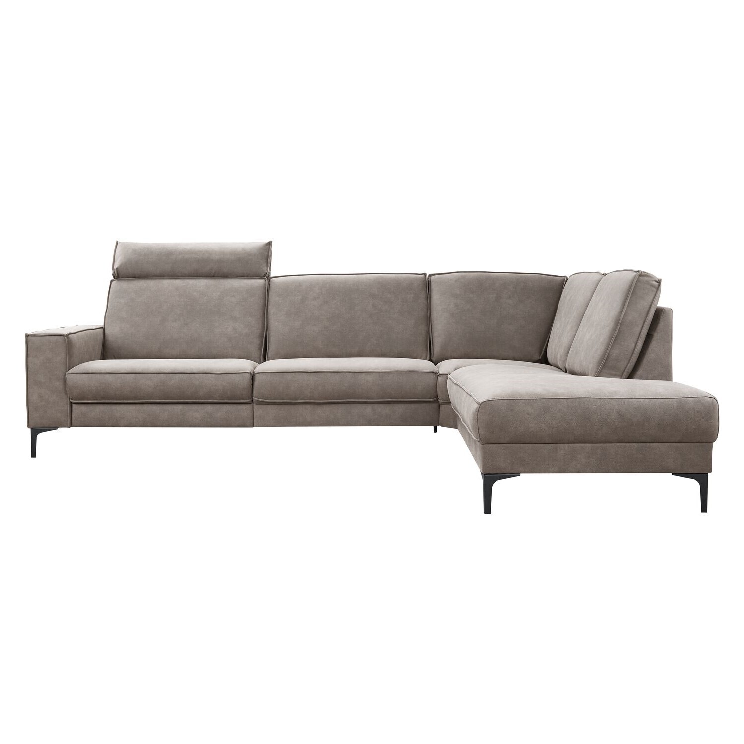 Uitvoering | 1,5 zits zonder arm met relaxfunctie en hoofdsteun + armleuning 1 links + 1,5 zits zonder arm + hoek met eiland rechts in stof python 83-cacao met pocketvering met een toplaag van HR-koudschuim in de zitting, HR-koudschuim in de rugkussens en zwarte metalen poten (1A6K). |