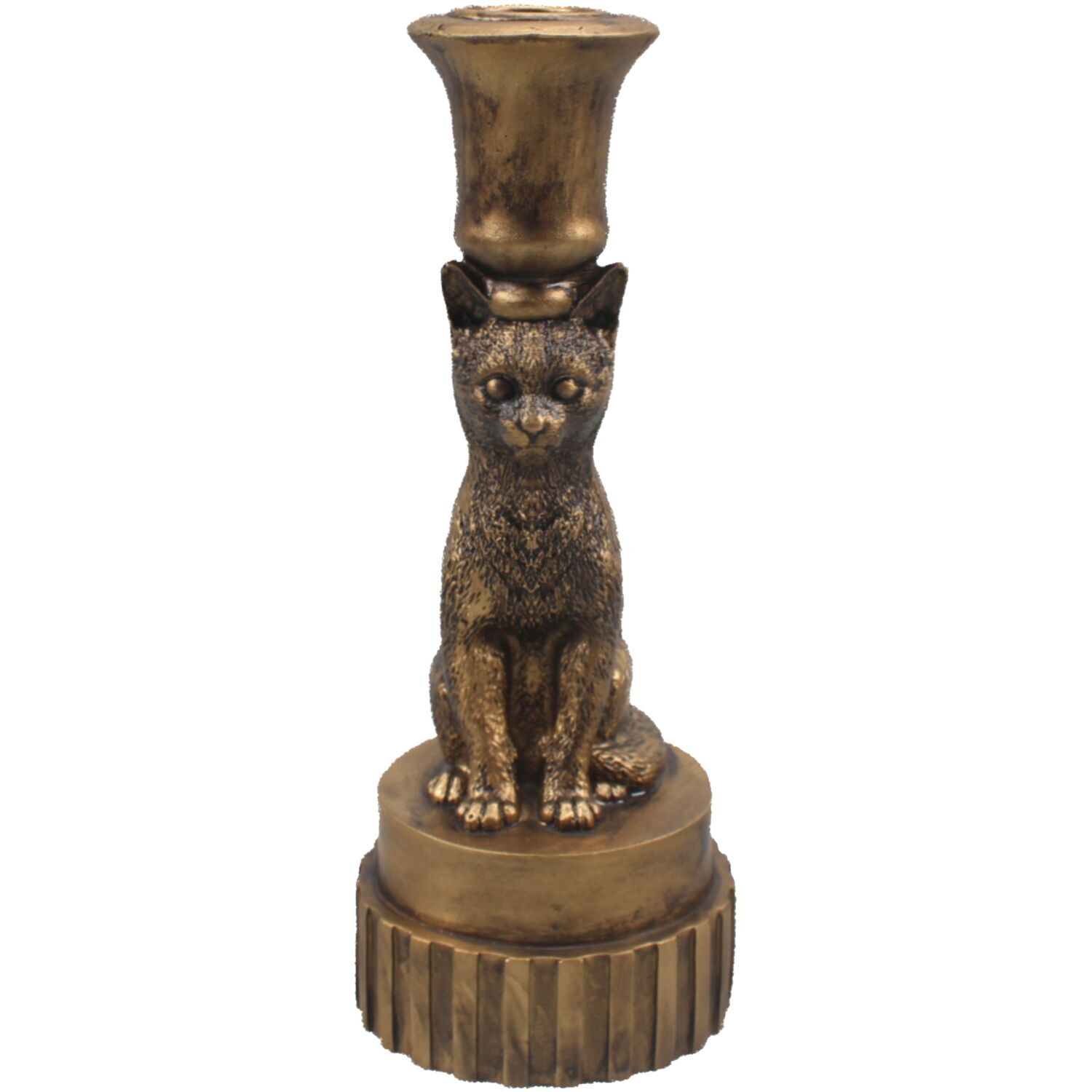 Stijlvolle kandelaar in kopertint met katfiguur